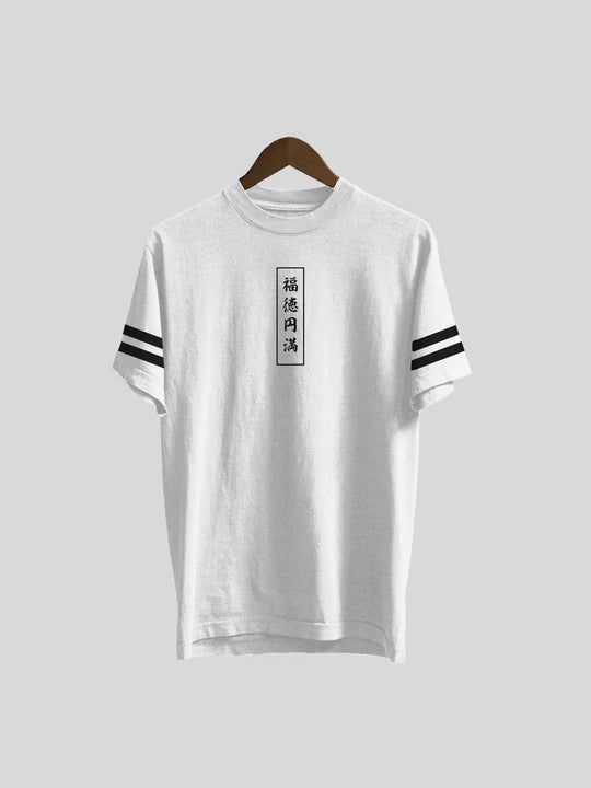 Shirt features a Japanese 4-kanji idiom "福徳円満" which translates to "being content and extremely happy"